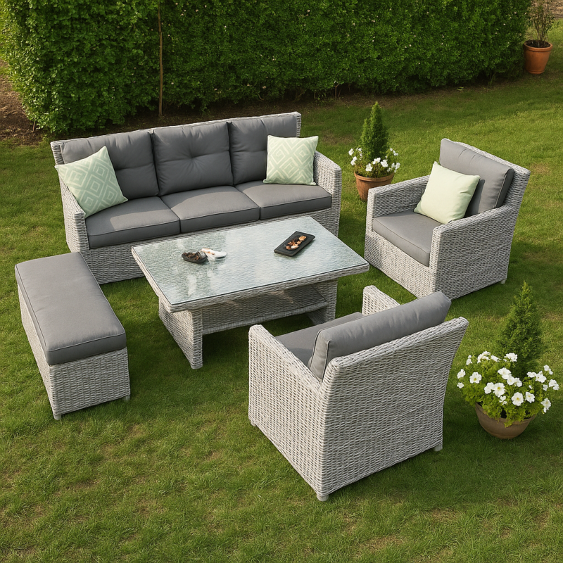 Sturdy, stylish, and super functional. The weatherproof cushions are a big win, no stress with rain!