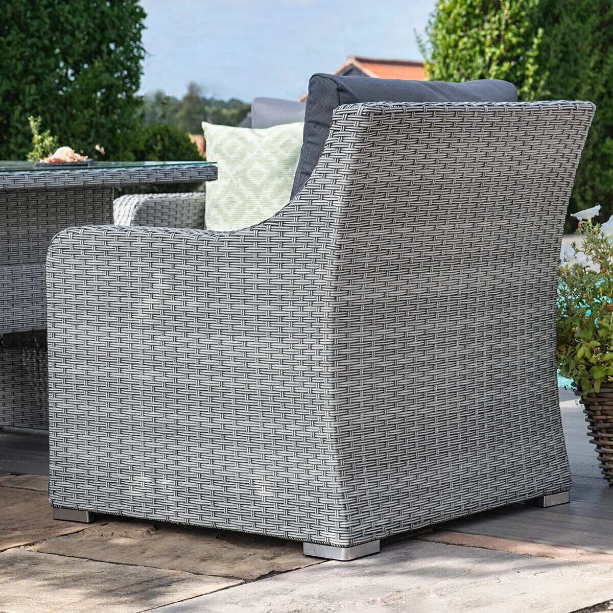 Our superior weave meets exceptional designs with the Ascot range, woven by hand over lightweight frames made of aluminium, this range is skilfully executed into elegant designs to enjoy in your outdoor living space for years to come. Ascot features revolutionary season-proof cushions that are as convenient as they are comfortable. The cushion covers are internally coated with a water-resistant lining to stop water permeation. Whilst the exterior covers retain water, they dry quickly in hot weather so you won’t have to rush out and collect them in surprise April showers. We do advise that during long periods of non-use or poor weather conditions that the cushions are stored indoors.