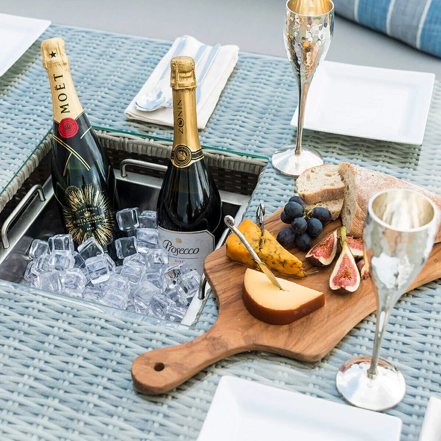 Our new Oxford Deluxe Corner Dining Set with Rising Table and Armchair is a timeless classic which will effortlessly enhance your outdoor living space whilst providing maximum comfort through its thick filled cushions. This set is recognized for its signature curved arms and backs and its beautiful woven edging detail. The ice bucket rising table provides great versatility for your outdoor space. It will allow you to go from dining to lounging as it transforms from a dining table to a coffee table with ease. The Oxford Deluxe Corner Sofa is designed to adapt to your outdoor space thanks to a detachable middle section, meaning you have the freedom to place your sofa on the left or the right.