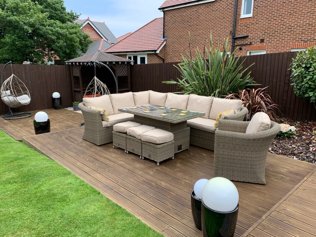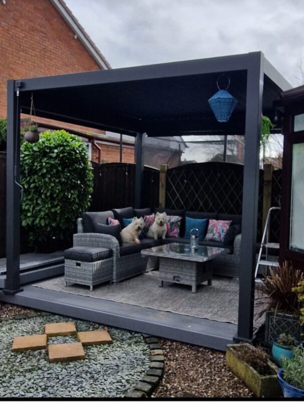 We bought the pergola and the garden furniture in the summer and we were really pleased with the quality and design. We added the privacy screens later so we could use the area all year round.