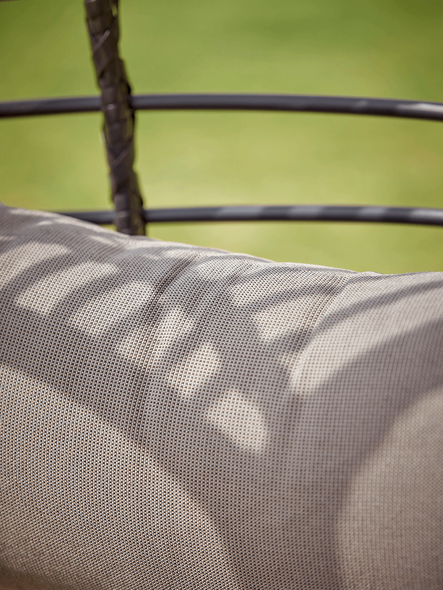 Our PU Rattan is UV proof to avoid fading and deterioration and the metal base has been treated with an anti-rust coating to ensure the long life of our hanging chair. However, as with all outdoor furniture, do not leave uncovered for long periods of wet weather.