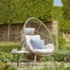 Our fun hanging chair has a characterful egg shaped design and is made from strong metal with a durable faux rattan wrap. It’s the perfect cocoon for nestling in outdoors, but can be used indoors too.