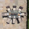 Oxford Corner Rattan Dining Set with Fire Pit Rising Table and Armchair